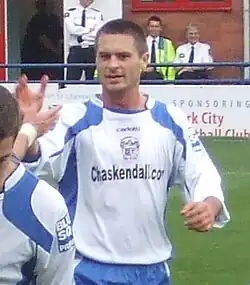 He joined Conference North team Stalybridge Celtic on loan on 17 March 2006 and played in nine games during the 2005–06 season.[11][12] He was released by York in May after failing to feature in the first team.[13][14] He signed for Stalybridge permanently on 7 July and he finished the 2006–07 season with 40 appearances and five goals.[15][16] He decided to leave the club at the end of the season, but in August eventually signed a new contract.[17] He played for Stalybridge in the 2008 Conference North play-off Final, which the team lost 1–0 to Barrow, and he finished the season with 2007–08 with 35 appearances and eight goals.[18]