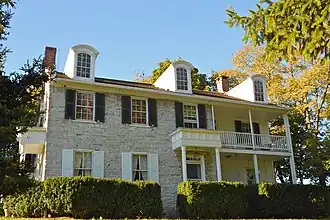The Ashton-Hursh House is a historic home and outbuilding located at 204 Limekiln Road in Fairview Township, York County, Pennsylvania.[2] Built in stages between approximately 1764 and 1830, it is a 2+12-story, L-shaped, Federal style log, frame, and stone dwelling. Situated on a limestone foundation, the home also has a gable roof and three Greek Revival-style porticos. The frame outbuilding may date as early as 1734; it was renovated circa 1830.[3] The outbuilding is believed by historians to be York County's oldest occupied structure.