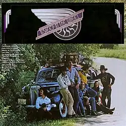 The Asleep at the Wheel album cover features a photograph of the seven-piece band in front of a vintage 1938 Cadillac, which was taken in Austin, Texas shortly after the band relocated there from Oakland, California.[6] The album was the band's first to feature bassist Tony Garnier, who replaced Gene Dobkin before recording began.[4] It was also the only album to feature the group's first full-time fiddler Richard "Corky" Casanova, who joined for the recording and was credited as an official member on the album sleeve.[7] Two tracks from Asleep at the Wheel were issued as singles in 1974: "You and Me Instead" and "Choo Choo Ch'Boogie".[8][9]