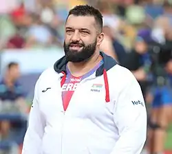 Asmir Kolašinac (Serbian Cyrillic: Асмир Колашинац; born 15 October 1984) is a Serbian shot putter who competed at the 2008 Beijing Olympics, 2012 London Olympics, 2016 Rio Olympics and 2020 Tokyo Olympics. In 2013, Kolašinac was European Indoor Champion in shot put. He is coached by Mišo Đurić and Nikola Tomasović.