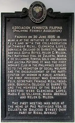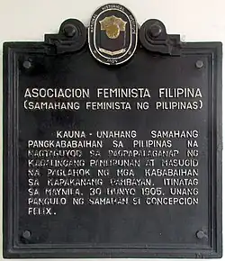 - ^ a b c "This Day in #Herstory: Asociacion Feminista Filipina". Foundation for Media Alternatives. 2018-01-10. Retrieved 2023-03-22.