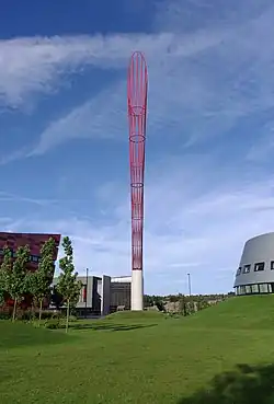 Aspire is a work of art, constructed on the Jubilee Campus of the University of Nottingham, in Nottingham, England.[1] It is a 60-metre (200 ft) tall, red and orange steel sculpture, and was, until overtaken by Anish Kapoor's Orbit, the tallest free standing public work of art in the United Kingdom.[2] It is taller than B of the Bang (which was dismantled in 2009), Nelson's Column, the Angel of the North, and the Statue of Liberty (excluding the pedestal).[3] The name Aspire was chosen after a competition to name the sculpture, which was open to staff and students at the university.[4]