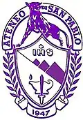 The first is the official seal of the school. Ateneo de San Pablo's seal is different from the school seals of the other Ateneos which all have the shield of the family of St. Ignatius of Loyola.