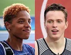 Yulimar Rojas (left) and Karsten Warholm (right) set world records in the women's triple jump and men's 400 m hurdles, respectively.