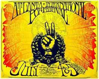 The first Atlanta International Pop Festival was a rock festival held at the Atlanta International Raceway in Hampton, Georgia, twenty miles south of Atlanta, on the July Fourth (Friday) weekend, 1969, more than a month before Woodstock.[1][2][3][4] Crowd estimates ranged from the high tens of thousands to as high as 150,000,[5] with few problems reported other than those related to the hot weather.