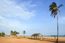 Atlantique Department border Zou Department to the north, Ouémé Department to the east, Littoral Department to the south-east, the Atlantic Ocean to the south, and Kouffo Department and Mono Department to the west. The coastal areas have interconnected lakes and lagoons and elongated coastlines with wide marshes; part of Lake Nokoué lies within the department. The southern regions of Benin receive two seasons of rainfall from March to July and September to November, while the northern regions of the country receive one season of rainfall from May to September. The country receives an average annual rainfall of around 1,200 mm (47 in), but Atlantique Department receives less rainfall.[2] The department has mostly low-lying sandy coastal plains towards the Atlantic Ocean, marshes, lagoons and lakes. The highest elevation in the department around the coastal plains is 20 m (66 ft), compared to the country's average of 200 m (660 ft) above mean sea level.[3]
