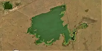 Atygay is a natural salt lake that is used as an evaporation reservoir for the wastewater of Ekibastuz city. The polluted water drains through a ditch from a small lake located 2 kilometers (1.2 mi) to the NW where the solid waste settles. Lake Atygay has fish, such as perch, that reach big sizes and attract fishermen. Authorities warn everyone fishing in the lake about consuming the fish caught in its waters owing to the high concentration of toxic substances.[4][5][6]