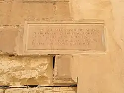 A plaque on the present building commemorates the former building, which incorporated the remains.