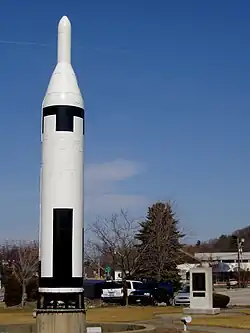 Robert H. Goddard launched the first liquid-fueled rocket from Pakachoag Hill, on his aunt Effe Ward's farm, in Auburn on March 16, 1926. Goddard is commemorated in Goddard Memorial Park, located downtown next to the Auburn Fire Department Headquarters. The park features a model of Goddard's prototype liquid-fueled rocket and a Polaris missile (Type A-1). A second replica of Goddard's prototype stands at Auburn High School. Goddard's launch is also commemorated with a small monument, the Goddard Rocket Launching Site, between the first and ninth holes of Pakachoag Golf Course.[3]
