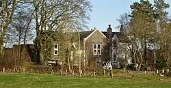 In 1860 a school is shown on the OS map in the hamlet, but by 1879 it was moved to the other side of the Lugton Water, with accommodation for 110 children, and an average attendance of 50, and with a grant of £45 11s 0d. In 1881 the attendance was 73 pupils.[13] A new Auchentiber school was built near the Bloak Road bridge and closed in 1954.[14] The building survives as a private house. A small school was also located for many years at the nearby hamlet of Bloak.