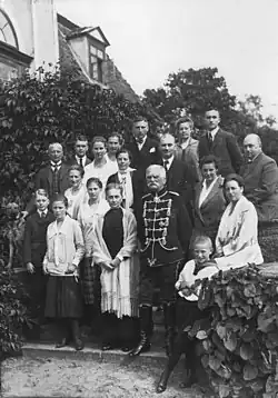 He married Doris (Dorothea) von Horn, the sister of a slain comrade, in 1879. Her father, Karl von Horn, was the influential Oberpräsident of East Prussia. They had two daughters and three sons. He found a mentor in the War Minister Julius von Verdy du Vernois.[5] In 1891, Mackensen was appointed to the General Staff in Berlin and bypassed the usual three-year preparation in the War Academy. His chief, Helmuth von Moltke, found him a "lovable character".[6]