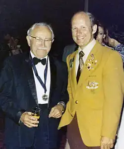 Paralympic movement founder Ludwig Guttmann with Australian Team leader Richard Jones at a function at the 1976 Paralympic Games
