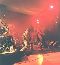 The same year, however, Sydney's live metal scene suffered a series of blows when several venues closed down. The Lewisham Hotel in the inner western suburbs, which as The Haunted Castle had hosted metal gigs up to four nights a week since the early 1990s, decided to close its doors to metal bands after a series of vandalism incidents. The other premier venue was the Phoenician Club on Broadway in the inner city, which also hosted regular metal events including shows by international touring acts; the building's history as a live music venue dated back to the early 1970s when groups like AC/DC had played there. On 21 October 1995, however, the club hosted a dance party known as a rave, attended by 15-year-old Anna Wood who died three days later after taking ecstasy there.[5] During the resultant investigation, the Phoenician Club's entertainment license was withdrawn and with the closure of another two venues shortly afterward—including the Cobra Club at the Parramatta Hotel which had been a key venue for every type of band from hair metal to thrash—the live heavy metal scene in Sydney almost came to a standstill. The Lewisham Hotel has since begun hosting metal gigs once more, although not as frequently. The old Phoenician Club building was eventually demolished in 2006 to make way for a residential precinct, and the Parramatta Hotel was similarly removed in 2003 and the site is now part of the enormous Westfield shopping complex.