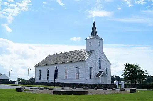 Austrheim Church (Norwegian: Austrheim kyrkje) is a parish church of the Church of Norway in Austrheim Municipality in Vestland county, Norway. It is located in the village of Austrheim on the island of Fosnøyna. It is the church for the Austrheim parish which is part of the Nordhordland prosti (deanery) in the Diocese of Bjørgvin. The white, wooden church was built in a long church design in 1865 using plans drawn up by the architect Askild Åse. The church seats about 355 people.[1][2]