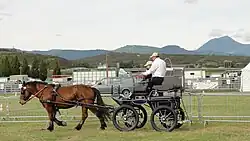 The communal Auvergne horse is an animal that is "dual purpose" intended primarily to pull carts but lacking the strength to plough.[17] It is only used to do agricultural and farm work and sometimes is used in the production of mules:[26] in the 1850s about 6,500 mares were covered each year in Auvergne, 5,827 were given a Donkey for only 673 covered by horses.[37] Mares also carried out the threshing of wheat.[18] At two and a half years foals from mares from Aveyron were employed threshing grain, ploughing, and carrying Pack saddles.[24]