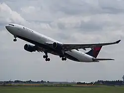 Delta Airlines Airbus A330-323 taking off at Amsterdam Schiphol Airport in July 2017.