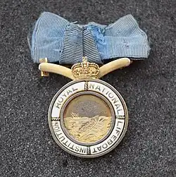 Ever since its inception in 1824, a number of awards have been established by the Institution, both for gallantry at sea, and for service to the Institution. None are approved by the Crown, and are therefore unofficial awards. As such, they do not appear in the official British order of wear,[3] although the principal lifesaving award, a Medal of the RNLI, can be worn on the right breast in uniform by members of the British armed forces.[4]
