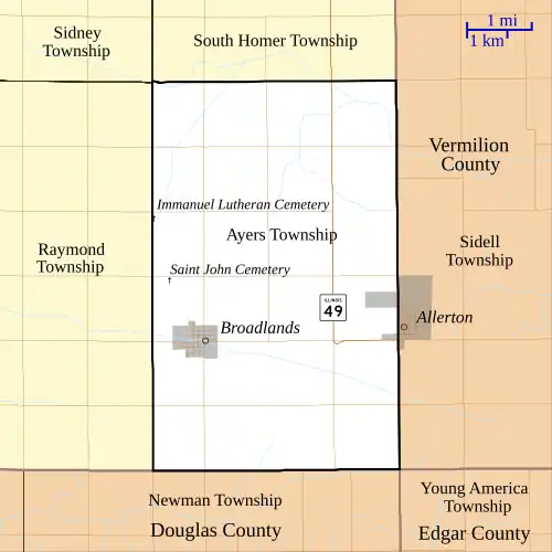 Ayers Township is one of thirty townships in Champaign County, Illinois, USA. As of the 2020 census, its population was 421 and it contained 198 housing units.[1]