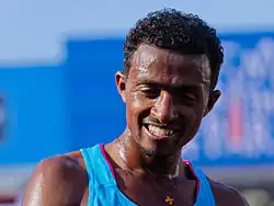 Later that season, he switched his focus to road events and won the Corrida de Langueux 10K in 28:13 minutes (the second-fastest ever on the course).[5] He won the national 30 km championships at the end of October and secured the Great Ethiopian Run 10K title a month later.[6][7] He returned to France the following week and made his marathon debut, finishing as runner-up at the Marathon De La Rochelle with a time of 2:10:25 hours.[8] He began his 2011 season on the roads, just missing out on a win at the City-Pier-City Loop behind compatriot Lelisa Desisa, although he set a personal best time of 59:39 minutes for the half marathon.[9] He was also the runner-up at the Prague Half Marathon three weeks later.[10]