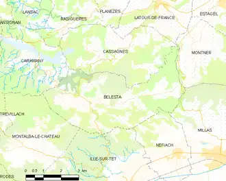 Bélesta is located in the canton of La Vallée de l'Agly and in the arrondissement of Perpignan.