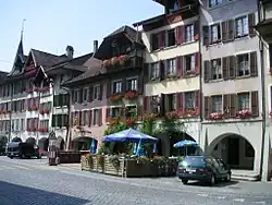 Büren an der Aare is first mentioned in 1185 as Buirro. In 1236 it was mentioned as Buron.[3] The formerly independent village of Reiben was first mentioned in 1309. It became part of Büren an der Aare in 1911.[4]