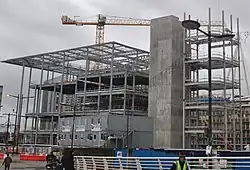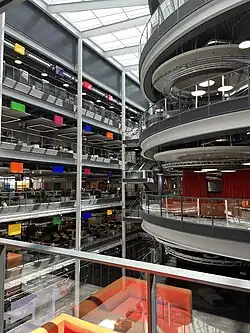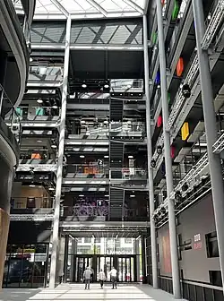 BBC Cymru Wales New Broadcasting House,[9] previously known as the BBC Cymru Wales headquarters building, is the headquarters of BBC Cymru Wales in Central Square, Cardiff. It operates many of its broadcasting services (radio and TV) from there using IP-based studios.[10][11] It also serves as a base for S4C.[12]