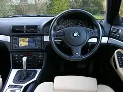 The E39 was one of the first vehicles (alongside the E38 7 Series) to have curtain airbags, which protect the occupants' heads in a side impact.[17] Standard equipment on the launch models included dual front and side airbags, pretensioners and load limiters for the front seatbelts,[18] anti-lock brakes, traction control, power steering, and air conditioning.[19][20] Satellite navigation was also available, initially using maps on CD-ROMs, then moving to DVD maps in 2002. Some of the optional equipment included heated front seats and steering wheel, a voice entry system, a cordless car phone, and double glazed door side windows.[21] Several models were available in Sports or Executive trim levels.[22][23]