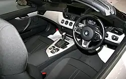 The E89 Z4 was offered with the base level sDrive or optional M Sport trim. The M Sport trim included 18-inch alloy wheels, leather upholstery, sports seats, redesigned front and rear bumpers, sports steering wheel and sports suspension.[18][19][20] An optional Design Pure Impulse package was also offered, having colour matching Alcantara or Nappa leather, and BMW Individual anthracite roof lining.[21]