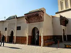The mosque is named after the nearby northern gate of the city, Bab al-Bard'iyin, whose name probably derives from a historic market for vendors of packsaddles (al-Bard'iyin) which existed nearby.[2] According to inscriptions inside the mosque, the construction of the mosque was supervised by a Berber chief named 'Ali ibn Yashu al-Yazghi and was completed in 1709 CE, under the reign of the Alawi sultan Moulay Isma'il.[2] Moulay Isma'il made Meknes the capital of Morocco and built a vast citadel and palace complex next to the city, resulting in the construction and restoration of many mosques and other structures in the city in his time. The initiative to build the mosque is attributed to Khnata bent Bakkar, a wife of the sultan who was vizier (minister) under him and became de facto ruler of Morocco in 1728 after his death.[10][11][12]