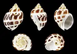Five views of a shell of Babylonia areolata