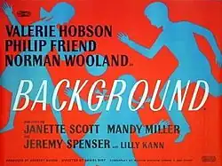 Background (U.S. Edge of Divorce) is a 1953 British domestic drama film dealing with the effects of divorce, directed by Daniel Birt and starring Valerie Hobson, Philip Friend and Norman Wooland.[2][3] It marked the film debut of Barbara Hicks. It was based on the 1950 play of the same title by Warren Chetham-Strode, who also wrote the screenplay for the film, with Don Sharp.[4] It was made at Southall Studios, with sets designed by the art director Michael Stringer. The film was produced by Group 3 Films and distributed by ABPC.