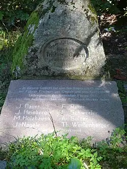 Following court martial-like proceedings three revolutionaries were sentenced to death in 1849 in Freiburg and executed by firing squad at Wiehre Cemetery on the dates shown: