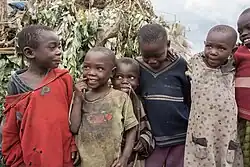 The Batwa are believed to have been the earliest inhabitants of East Africa together with the Bambuti of Mt.Rwenzori and Ndorobo of Kenya. They do not lead a permanent settled life.[4] The Bahutu are Bantu and are believed to have migrated from the Congo around AD 1000. They entered Rwanda from the northwest. The Origin of Batutsi is part Nilotic/Cushitic assimilated in Bantu. Some say they migrated through Karagwe in northern Tanzania. Others say that their origin could have been either Sudan or Ethiopia. This is because of the Batutsi semblance to the Iraqw people and Masai people.[5][6] However because of continuous intermarriages there are no clear distinctions between these groups as all live in harmony as Bafumbira. The Bahutu, Batutsi, and Batwa are the three indigenous groups that make up the Bafumbira, they are essentially Banyarwanda and speak Kinyarwanda.[6]