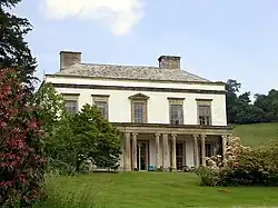 Bagborough House was built in 1739 by the Popham family, next to St Pancras Church.[3] The saloon has decoration in the style of William Kent which dates from the original construction.[4] The south front which has five Ionic columns, overlooks a landscaped park.[5]
