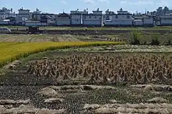 Most Bai are agriculturalists. They cultivate many crops like rice, wheat, rapeseed, sugar, millet, cotton, cane, corn, and tobacco. However, some Bai also engage in fishing and selling local handicrafts to tourists.[35] Most Bai were subsistence rice farmers, but they also cultivated wheat, vegetables, and fruits. Unlike the Han and most other Chinese minority groups, the Bai ate cheese and made it from either cow or goat milk. The leftover whey from the process of cheese-making was fed to pigs. Those who lived around Erhai Lake fished.[36]