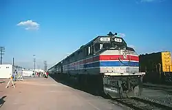 Service continued until 1971, when Amtrak was formed. Since a rail route along the coast and in the San Joaquin Valley was considered redundant, the San Joaquin Valley route was dropped. In 1972, the train station was demolished by Santa Fe and replaced with freight offices and a parking lot.[5]
