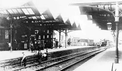 The ridged canopies over platform 1, the goods shed and cattle dock have all since been removed.