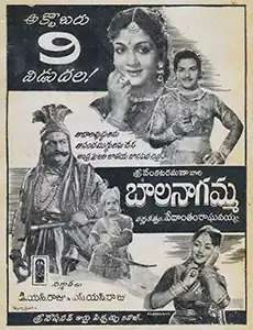 Bala Nagamma is a 1959 Indian Telugu-language fantasy swashbuckler film directed by Vedantam Raghavayya. The film stars N. T. Rama Rao, Anjali Devi, and S. V. Ranga Rao with music composed by T. V. Raju. It is a remake of the 1942 Telugu film of the same name.[1]