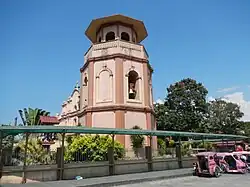 The church falls under the Baroque architecture. It is made of lime, bricks, and stone.[3] Across the three-story facade is four pairs of columns and lantern-like finials with two acroterium on top of angular piers on the column's end. Its pediment ends up in a small scroll. A separate bell tower is found adjacent to the church.[1] On the ceiling of the main altar is the murals of the Four Evangelists. On the right side of the main altar is the altar for the Our Lady of Namacpacan and on the left side is the altar for Saint Nicholas of Tolentino.