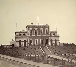 In 1859 the newly formed council acquired land in what was to become the Barkly Street civic area and on 26 December 1861 the foundation stone was laid for the Ballarat East Town Hall, which was built in a Renaissance Revival architecture style and set in formal gardens. It was completed the following year, along with the Ballarat East Free Library next door[6] and the Ballarat East Fire Station, a new headquarters for the fire brigade (formed in 1856) was erected a few years later, in 1864.[7]