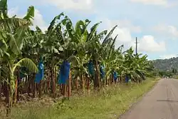 The banana industry is an important part of the global industrial agrobusiness. About 15% of the global banana production goes to export and international trade for consumption in Western countries.[1] They are grown on banana plantations primarily in the Americas.[2]