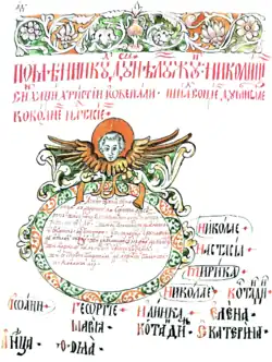 The Habsburgs' effort toward Catholicizing Oltenia mostly concentrated on reforming the Orthodox Church itself—one such measure was to impose Catholic monastic rules on Orthodox monks.[168] By 1726, Steinville's portrait had been added into frescoes of Sfântul Nicolae Church in Băile Olănești (it was covered up after 1739).[169] The issue of Catholic government in an Orthodox land became intertwined with religious disputes in Transylvania, where the Habsburgs had established a Romanian Greek Catholic congregation, part of the Eastern Catholic Churches. It was partly as a result of Gheorghe Cantacuzino's intervention that Ioan Giurgiu Patachi was elected in 1714 as the second Catholic Primate of Bălgrad.[170] Before his death in 1727, Patachi sought to establish an Eastern Catholic bishopric for Habsburg Oltenia, while seeking to "gather under his watch all of Austria's Romanians".[171] This project never took hold. Instead, in January 1728,[172] Râmnic Bishops were given an exclusive privilege in handling Orthodox life in the southernmost pockets of Transylvania, at a time when most other Orthodox Transylvanians were decreed to have been united with Rome. According to scholar Mihai Săsăujan, this state of affairs was preserved into the 1750s.[173] The situation angered the new Catholic converts: Stefan Olshavskyi, the Vicar of Mukachevo, asked that the Ecumenical Patriarchate refrain from consecrating Orthodox priests anywhere in Transylvania.[174]