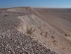The depositional profile of the northern Banc d'Arguin describes a flat-topped platform, on which extensive carbonate deposits developed largely in water depths <10 m below sea level. Vast areas of the Banc d'Arguin are covered by mixed carbonate–siliciclastic sediments dominated by barnacles and mollusc remains plus admixed aeolian siliciclastics. These sediments accumulate into extensive shoals, resulting in water depths less than 5 m several dozen kilometres off the present shoreline. The bank edge forms a sharp morphological step, suddenly deepening from 10–20 m down to 30–50 m, and separates the inner shelf environments (<5–10 m; carbonate bank) from those of the outer shelf. Assemblages formed by benthic foraminifers and molluscs and monospecific bivalve shell accumulations with admixed aeolian silt characterize the platform cover in the outer shelf.[14]