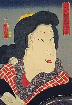 ![]() Bandō Shūka I as Hashimotoya Shiraito, print by Utagawa Toyokuni III, 1860. | |
