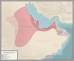 Bani Khalid (Arabic: بني خالد) is an Arab tribal confederation mainly inhabiting the Arabian Peninsula. The tribe ruled southern Iraq, Kuwait, and Eastern Arabia (al-Hasa and al-Qatif) from the 15th century to the 18th century, and again under the protection of the Ottoman Empire during the early 19th century. At its greatest extent, the domain of Bani Khalid extended from Iraq in the north to the borders of Oman in the south, and Bani Khalid wielded political influence by ruling the region of Najd in central Arabia. Most of the tribe's members presently reside in eastern and central Saudi Arabia, while others live in Iraq, Kuwait, Qatar, Bahrain, Syria, Palestine, Lebanon and the United Arab Emirates. Bani Khalid has both Shia Muslim[1][2][3] and Sunni Muslim members.[4][5]