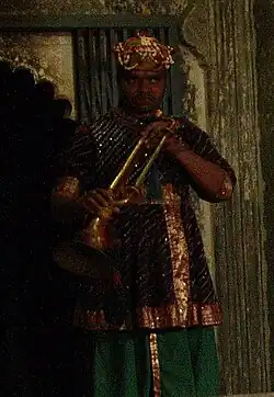 The Bankia is a traditional wind instrument from Rajasthan, India. It is made of bronze.[1] It consists of a bugle-like tube and a saucer-shaped bell with an integrated mouthpiece.[2] It produces powerful sound.[3] It is commonly used during folk performances like the Chari and Kachchhi Ghodi dances.[1]