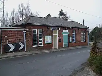 The station was opened by the London, Brighton and South Coast Railway on 22 May 1865 as part of the Epsom Downs branch line. The branch was originally laid as double track to accommodate Epsom Downs horse race traffic and was electrified on 17 June 1928. In the 1920s, the station's name was painted in large letters on the roof as a navigation tool for pilots coming into Croydon Airport.[3] Due to the destruction by fire of the Epsom Downs signal box in November 1981, the branch was singled for most of its length in October 1982 and trains stopping at Banstead now use only the Down platform where there is a shelter. The Up track and platform have been removed.