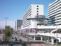 Barmbek-Süd had faced major destruction during the Bombing of Hamburg in World War II.[2][3] It was mainly rebuilt in the 1950s, including parks and apartment buildings with the typical brick architecture.[3] In 1970 the major mall of Einkaufszentrum Hamburger Straße (today Shopping-Center Hamburger Meile) opened, then considered as the largest mall within a city in Germany. In the 1990s the office area of Alster-City was built on the site of the former gasworks.