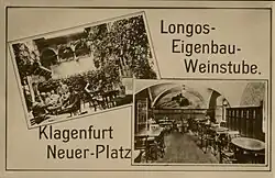 With the opening of the Brennero Railway in 1867 and the Val Pusteria railway in 1871, larger quantities of wine from Alto Adige could be transported greater distances. In this pioneering period of the Alto Adige wine business, during which Alto Adige wine became increasingly well known beyond the state borders, Anton Freiherr von Longo-Liebenstein started to sell wine in barrels and bottles from the streets of Klagenfurt in around 1880. Owing to increasing sales, he finally opened a wine inn. This was in operation from around 1900 to the 1960s and went by the name “Longo’s Eigenbau Weinstube” or “Longo’s Tiroler Eigenbau Weinstube”.