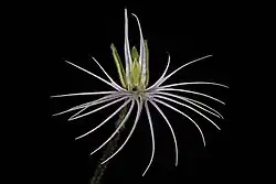 Bartholina burmanniana, the spider orchid, is a species of deciduous, geophytic, flowering plant in the family Orchidaceae.[2] It is one of two species within the Bartholina genus, the other being B. etheliae.[3] The species’ common name refers to its spreading and deeply cut lip that is said to resemble a spider's legs.[4] It is native to the Eastern and the Western Cape Provinces of South Africa, flowering from the end of August to the middle of October and peaking in September.[3] This is one of the species sometimes referred to as "spider orchid".